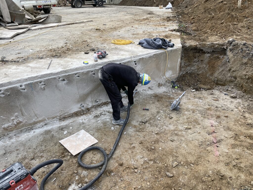 • 철근이나 앙카볼트를 삽입해서 고정하는 작업